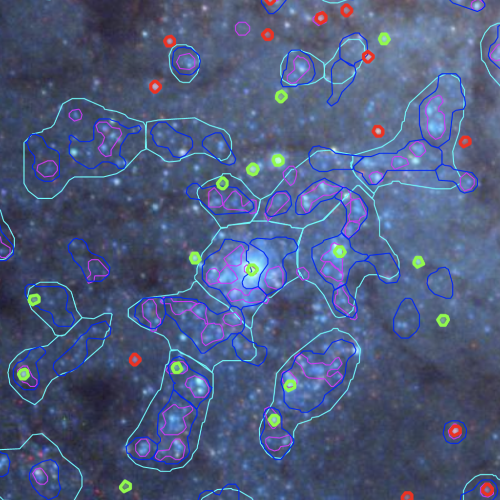 Collaborators: Dr. Danny Dale (UWyoming) , Dr. Janice Lee (NOIRLab) , & the PHANGS-HST collaboration Contributions: I constructed tools for our Python pipelines to identify and compute properties of stellar clusters & associations in Hubble Space Telescope data.